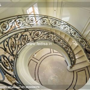 Classic Curved Staircase Design Minimalist Stair Railing Metal Grill Gate Design