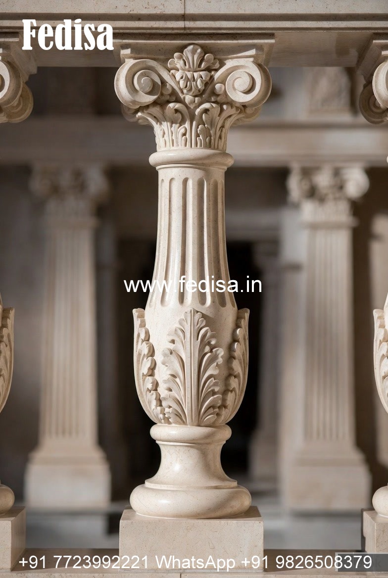 Elegant Balcony Marble Balusters White Railing With White Spindles